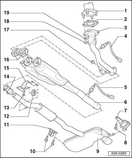 Exhaust System Components, AWD, Removing And Installing