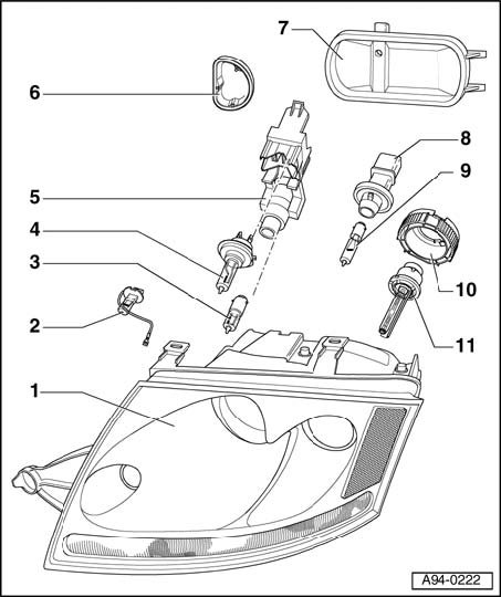 - From approx. 04.00, High Intensity Gas Discharge Lamp Control Modules -J343- and -J344 are mounted directly to housing.