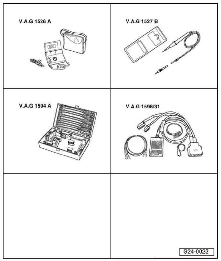 - Connect V. A.G 1598/31 test box at wiring harness to Engine Control Module (ECM) but do not connect ECM. Scan Tool Testing and Procedures