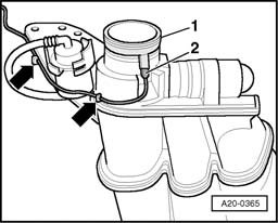 - Ensure connector -2- of Ground (GND) connection fits securely at metal ring -1- of fuel filler tube.