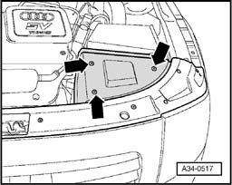 - Remove air guide hose from Throttle Valve Control Module J338, to do so remove hose clamp - 4 -.