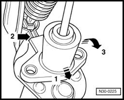 ^ It must not be covered in the upper area of bearing for over-center spring - arrow 2 -.