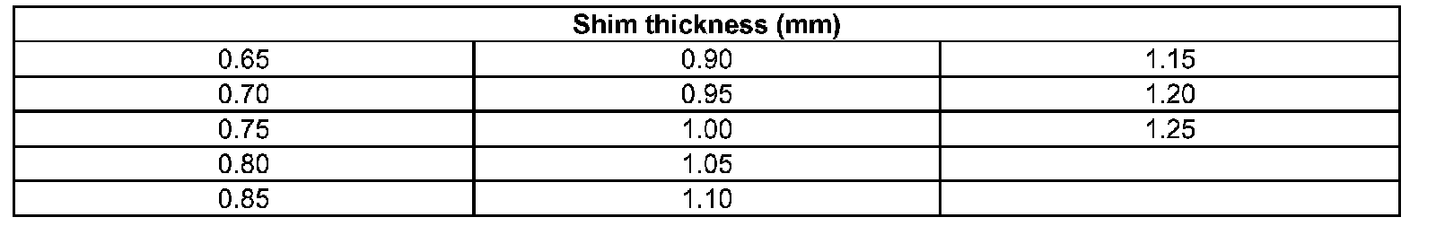 For initial measurement, an adjustment shim S 2 with a thickness of 1.00 mm is inserted. It is designated as S 2 in the following. After determining backlash, S 2 is replaced by final adjustment shim S 2.