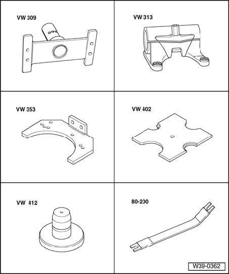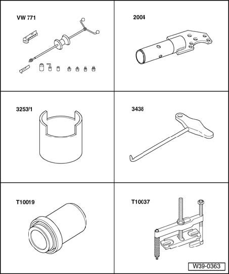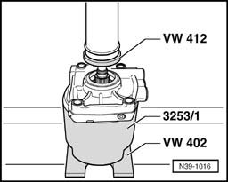 - Pull out pump e.g. using slide hammer VW 771 and pulling hook VW 771/37, Fig. NO1-0424.