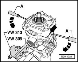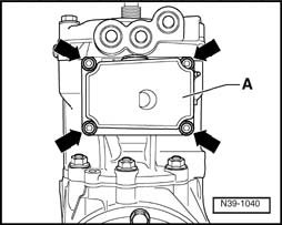 - Remove right cover (next to oil filler plug), tighten bolts - A - uniformly while doing so, so cover is not canted.