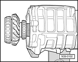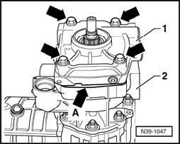 - Insert washer - 1 - for axial needle bearing with offset to axial needle bearing - 2 - pointing - arrow A - into drive pinion housing.