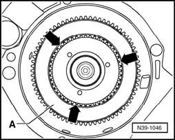 - Insert new O-ring - A - into surrounding groove of drive pinion housing and coat with gear oil.