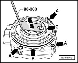 - Coat O-rings - arrows A and arrow B - with high performance oil for Haldex clutch and insert into Haldex clutch cover.