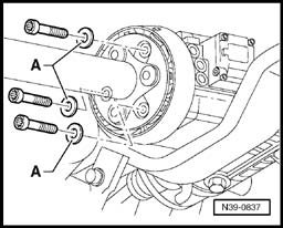 ^ If droning noises are still heard, drive shaft must be bolted on again, offset by one more hole.