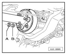 Note: Any balancing nuts - A - and balancing washers - B - present must be removed.