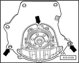- Engage intermediate plate on sealing flange and press onto dowel sleeves (arrows).