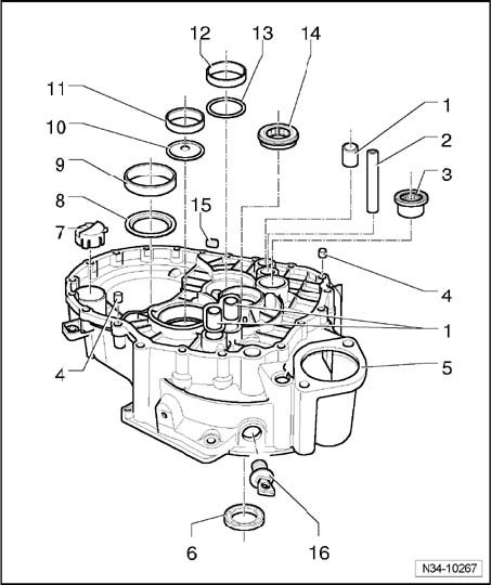 Clutch housing (transmission as of approx. 04.2003), servicing, 02M/02Y, 5 & 6 Speed M/T, AWD