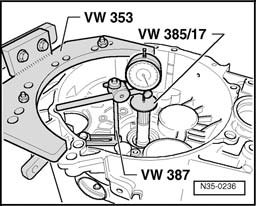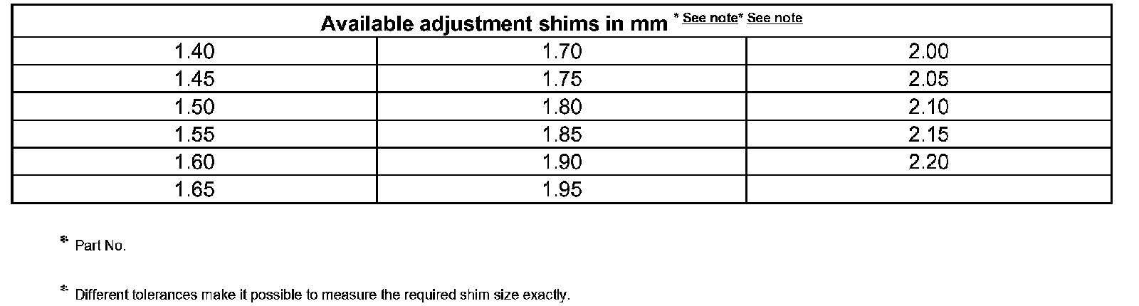 ^ For correctly selected adjustment shim, dial gauge must now display a value of 0.15 mm to 0.25 mm.