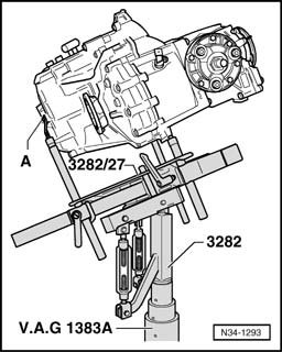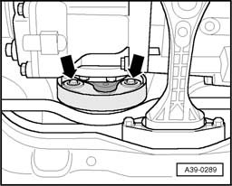 - Bolt on pendulum support to subframe using new bolts - arrows A -.