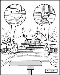 CAUTION! Only remove Engine Support Bridge 10-222 A when all bolts left and right of subframe mount are tightened to torque.