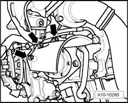 - Insert bracket for bevel gear transfer case before screwing in connecting bolts for engine/transmission.