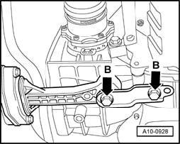 - Bolt on pendulum support to transmission using new bolts - arrows B -.