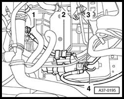 - Connect electrical harness connector - 1 - to pressure switch for power steering.