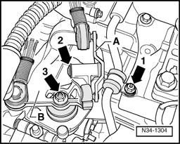 - Install shift rod lever - B - with shift cable at shift rod, to do so tighten nut - arrow 3 -.