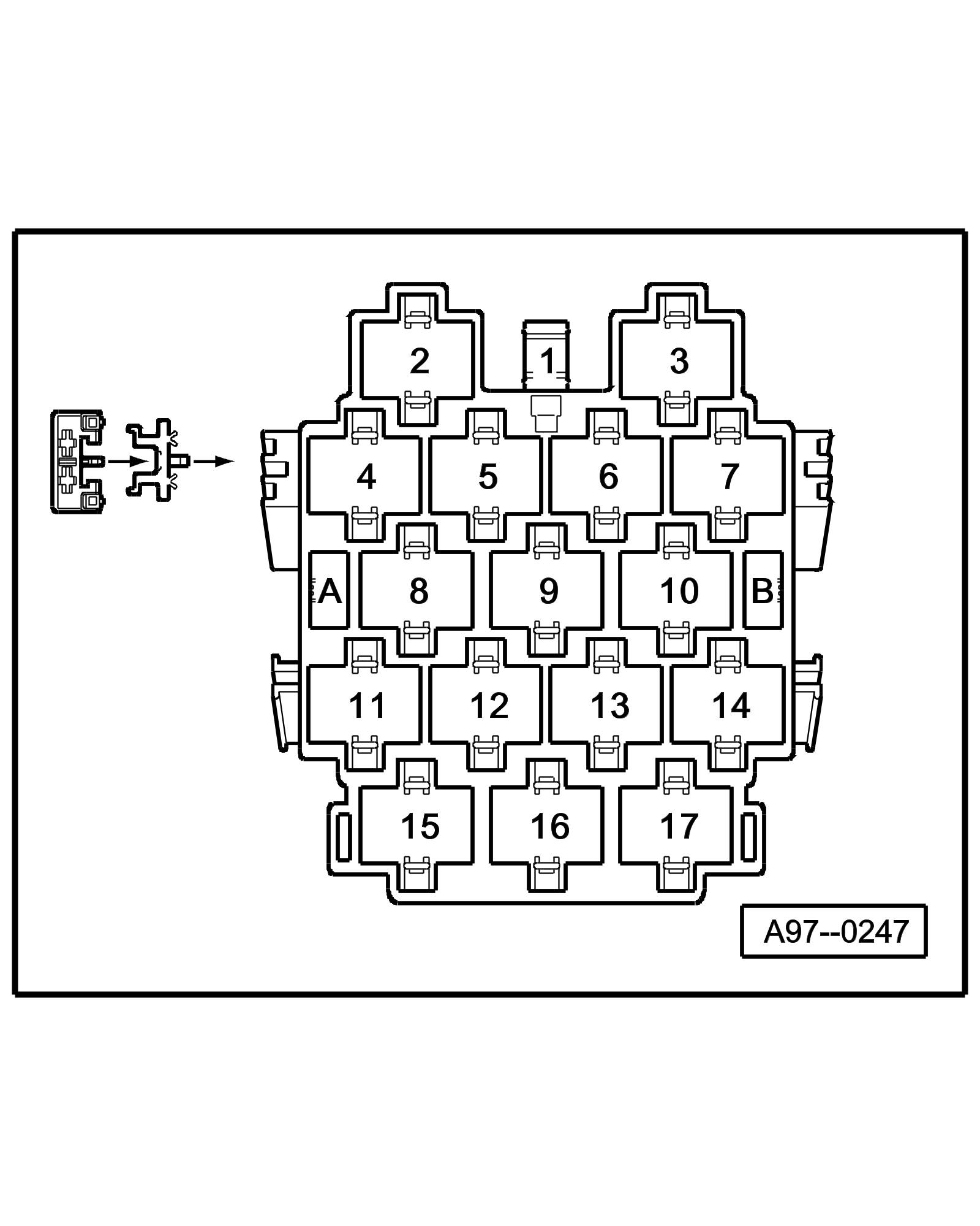 • From fuse number 23 upwards the fuses in the fuse panel are designated as 223 in the Wiring Diagram.