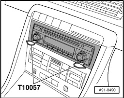 - Push the two clips of radio removal tool T10057 into the front of the radio.