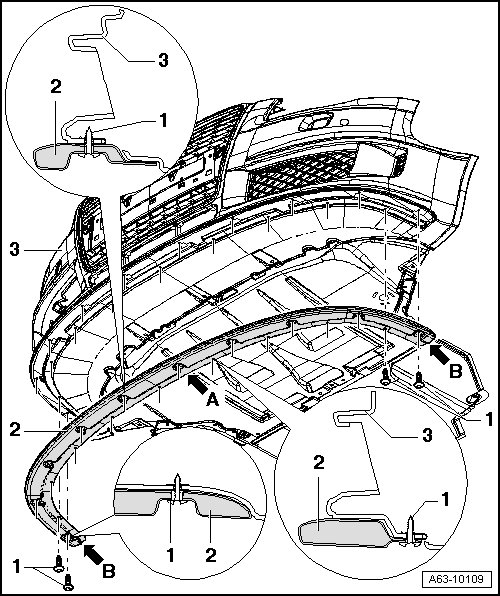 • Slide spoiler back at left and right to stop - arrow B - and tighten both rear screws to 2 Nm.