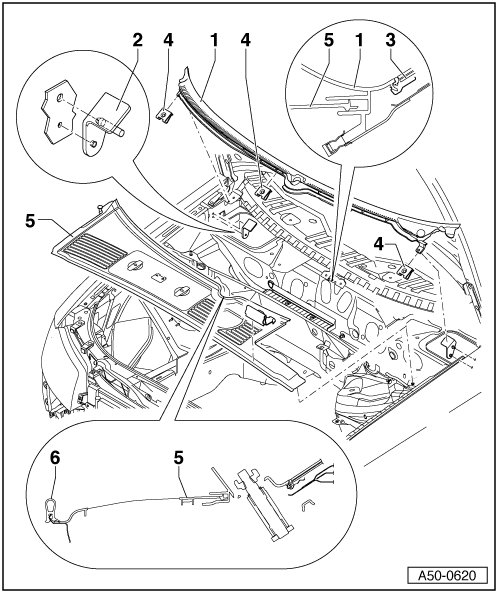 • Remove gasket => [ (Item 6) Gasket ] and remove cover from cowl panel trim.