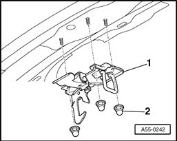 To remove, remove nuts - 2 - and remove catch hook - 1 -.