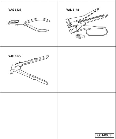 - Clamp Replacement Staples VAS 6148/1 onto ends of zip fasteners - arrow -.