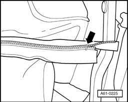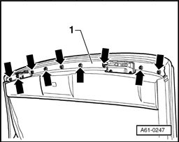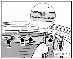 - Check whether clips - 1 - are located completely in convertible top headliner frame.