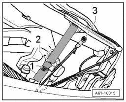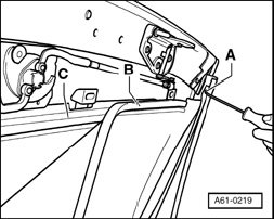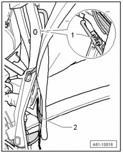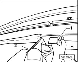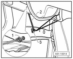 - Remove rubber cable - 2 - from eyelet - 3 - on inner side of roof guide "2"