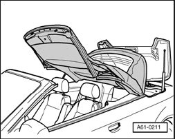 NOTE: The spring is visible at the rear end of the roof guide "2" when the convertible top is brought into center position.