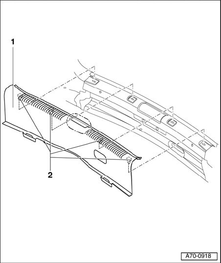 - Unclip rear cross panel trim - 1 - upward from clips - 2 - (4x).