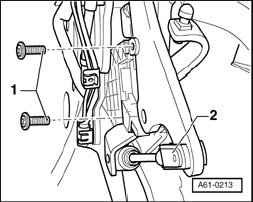 - Remove convertible top switch unit bolts - 1 -. The switch unit consists of Convertible Top Closed Position Switch F202 and Convertible Top Open Position Switch F171.