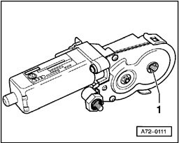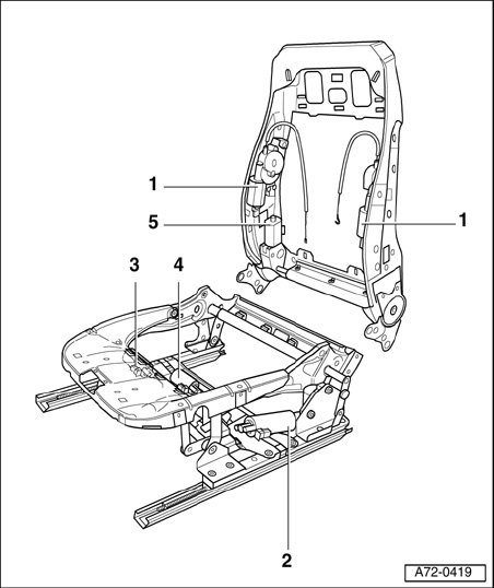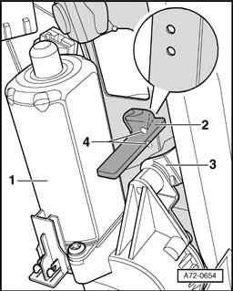- Pull shaft - 4 - out of backrest frame - 1 - until backrest inclination adjustment motor can be removed.