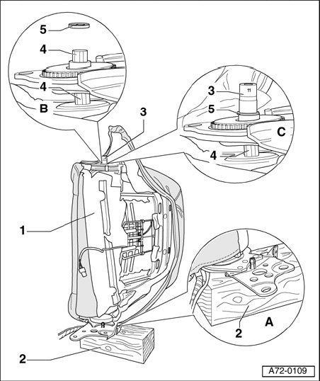 - Using a screwdriver, pry off the spring washer- 5 - on the side of the backrest inclination adjustment motor (illustration detail - B -).