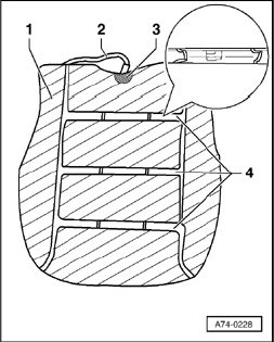 - Align heating elements - 1 - on the seat cushion, remove the protective film and bond the heating elements firmly onto the padded surfaces.
