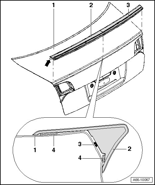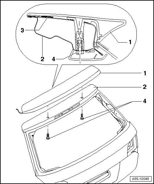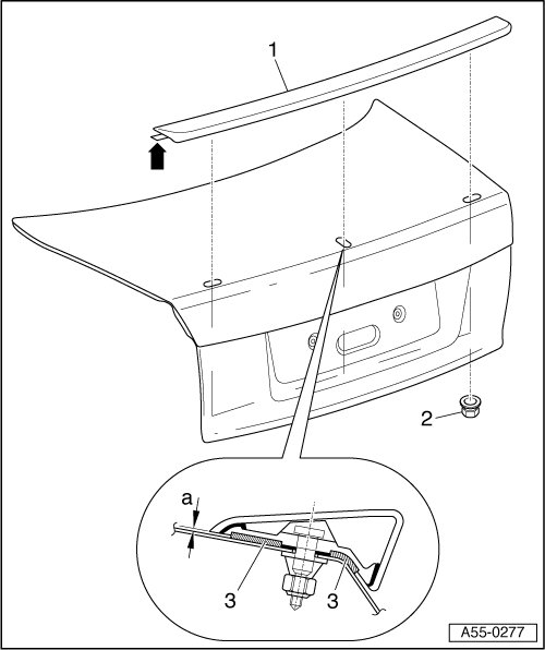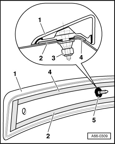 - Heat rear lid from inside in adhesion area for spoiler using a hot air gun, e.g. (V.A.G 1416).