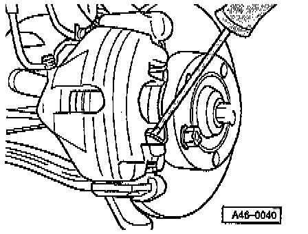 - Remove the brake caliper housing and lay to one side so that the weight of the brake caliper does not stress or damage the brake hose.