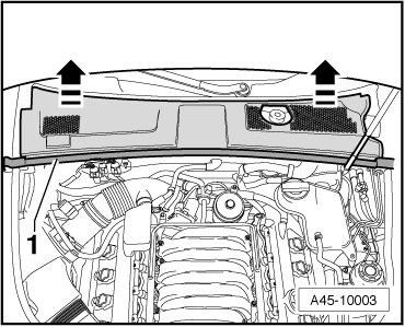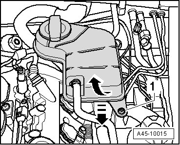 - Remove the bolts - 1 - securing the coolant expansion tank.