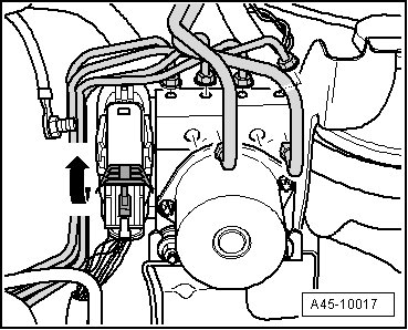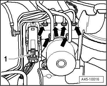 - Disconnect the remaining brake lines - arrows - from the hydraulic unit.