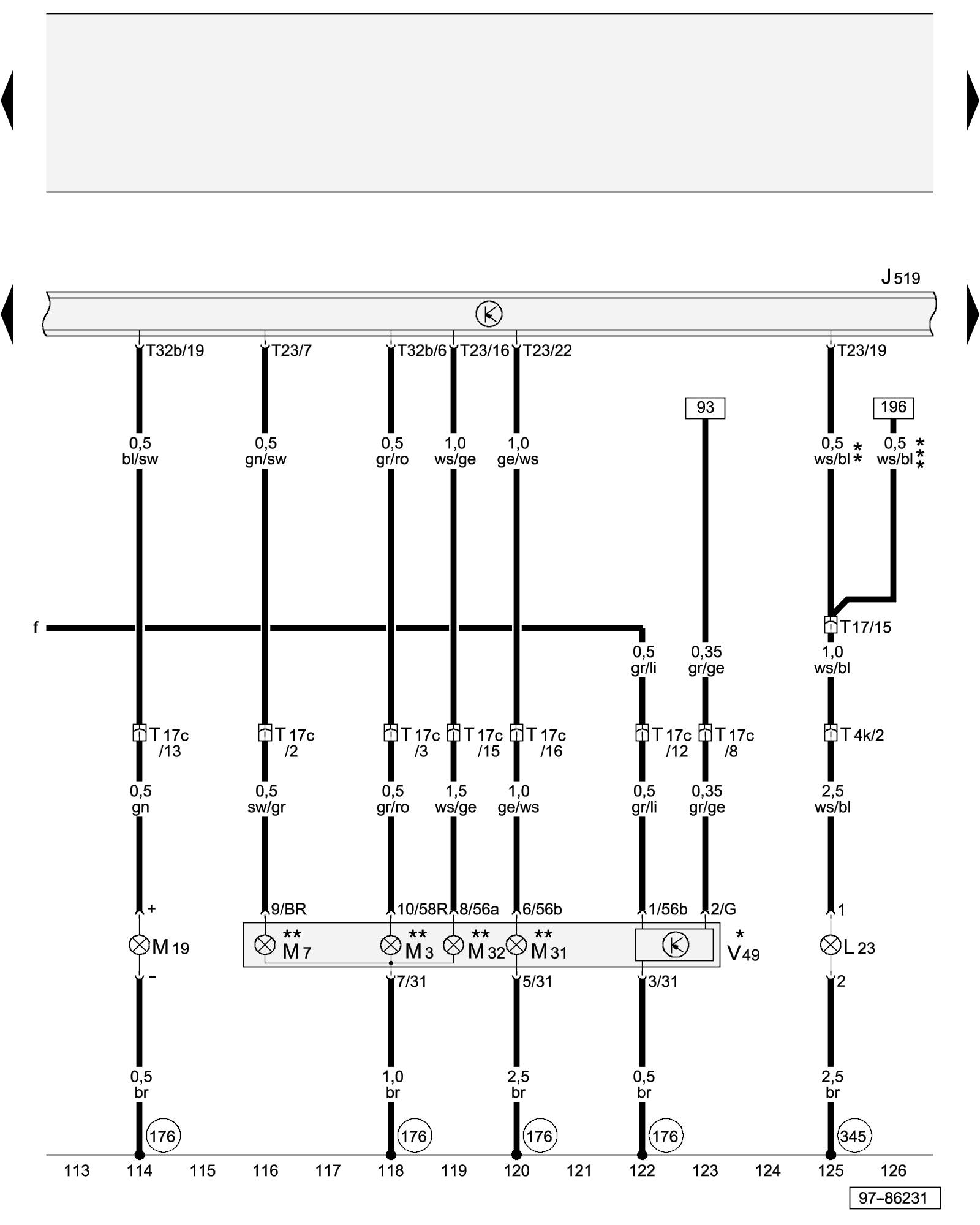 ** - with headlights and highline equipment only, for headlights and lowline equipment, => applicable wiring diagram