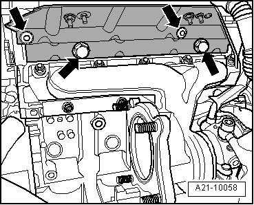 - Remove engine cover - arrows -.