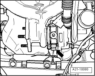 - Loosen bolt - 1 - of support for turbocharger by 2 turns.