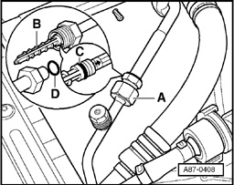 - Remove refrigerant line at threaded connection - A - (seal open connections).