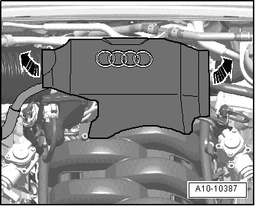 - Remove rear engine cover in direction of - arrows -.