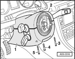 - Separate upper trim - 2 - for steering column switch from lower trim - 1 - and remove both sections.