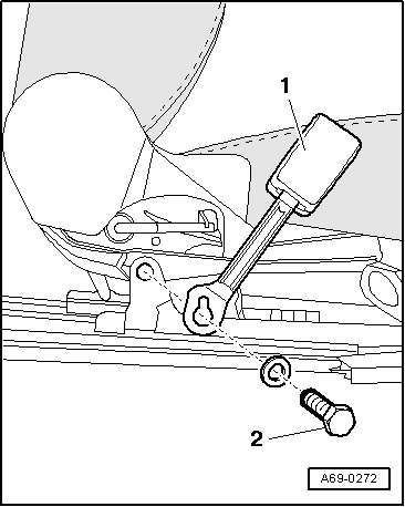 - Remove the bolt - 2 - for safety belt latch - 1 -.