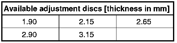 - Insert corresponding thicker adjustment disc, lower adjustment disc must also be replaced, if necessary.