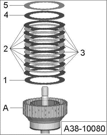 - Remove all lining discs - 2 - and outer discs - 3 - from input shaft cylinder - A -.